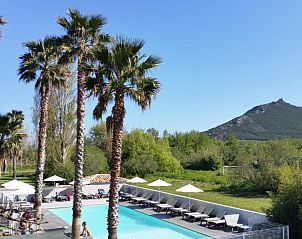 Chalet Double", 3-room chalet 76 m2. Comfortable furnishings: living/sleeping room with 1 sofabed (140 cm, length 190 cm), dining nook and TV (flat screen), air conditioning. Exit to the terrace. 1 large room with 1 french bed (160 cm, length 200 cm), shower/WC and TV (flat screen), air...